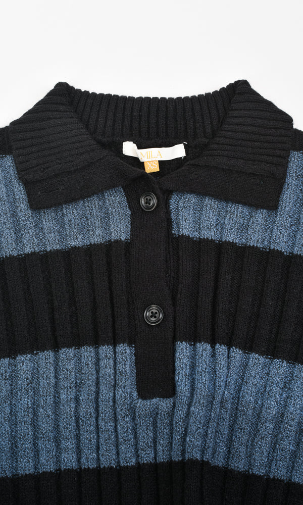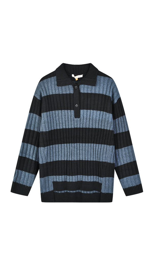 סריג הפסים שאת חייבת בארון! הוא רך ונעים למגע, בעל גזרה מחמיאה וכפתורים מעוצבים. מושלם ליום יום, לעבודה או לכל יציאה, ומשתלב בקלות עם ג'ינס, חצאית אלגנטית . פריט בייסיק על זמני שתמיד נראה שיק.