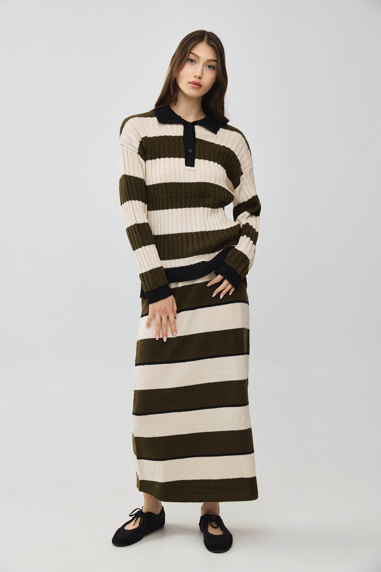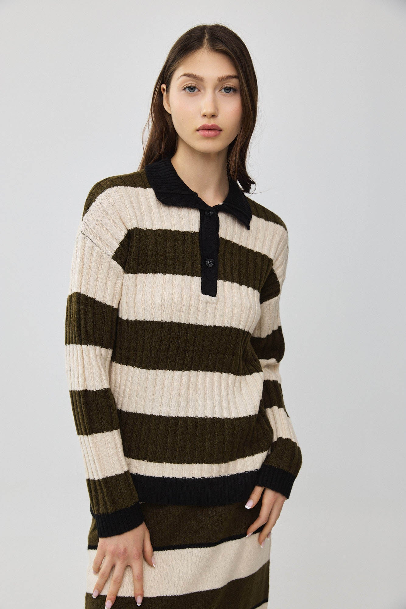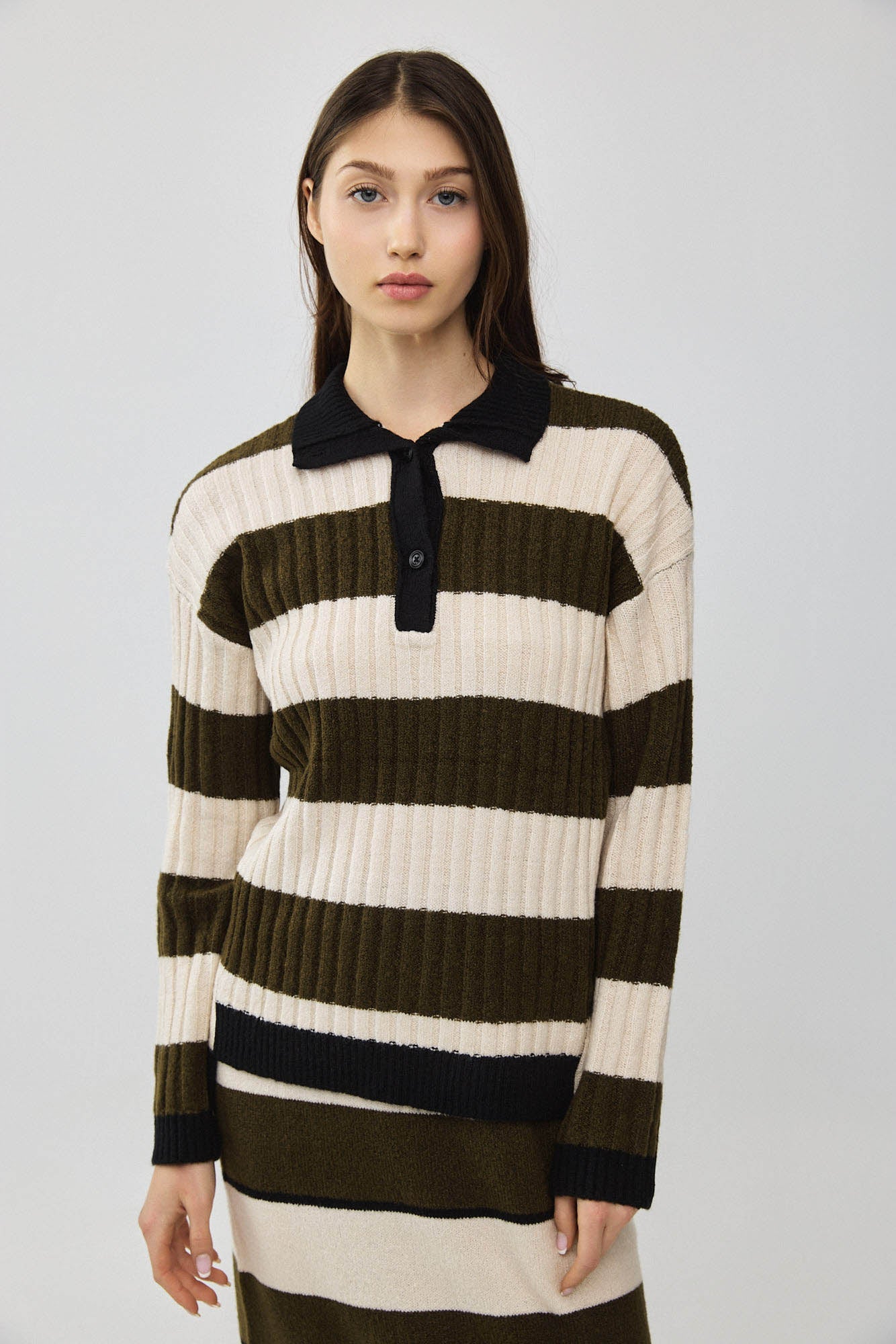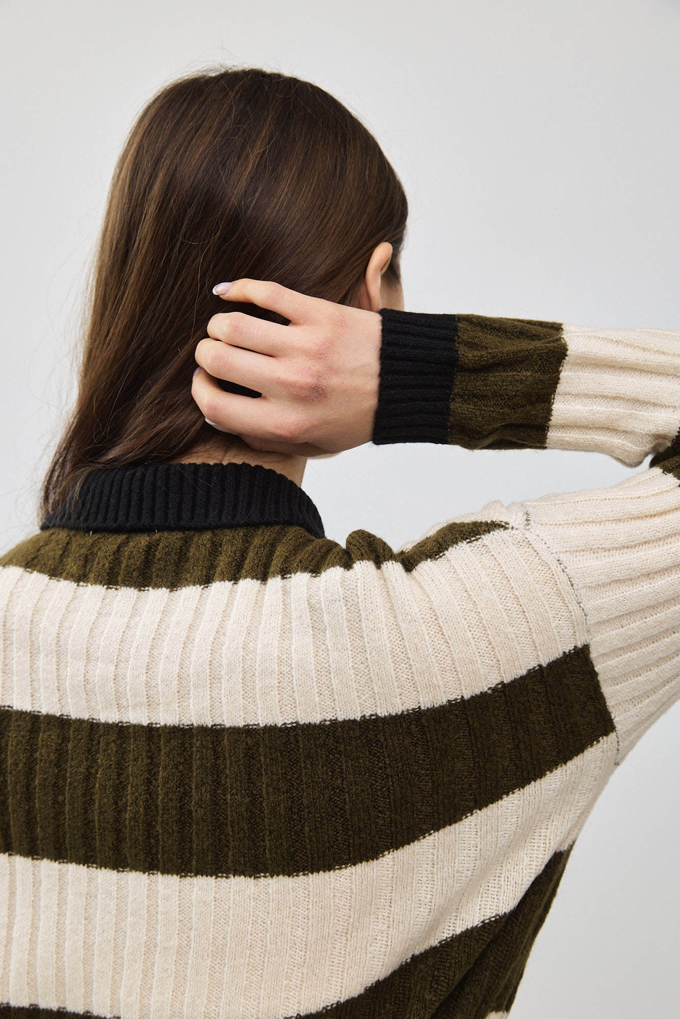 סריג הפסים שאת חייבת בארון! הוא רך ונעים למגע, בעל גזרה מחמיאה וכפתורים מעוצבים. מושלם ליום יום, לעבודה או לכל יציאה, ומשתלב בקלות עם ג'ינס, חצאית אלגנטית . פריט בייסיק על זמני שתמיד נראה שיק.