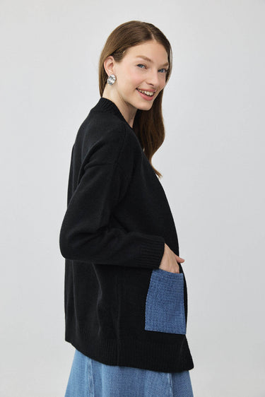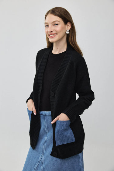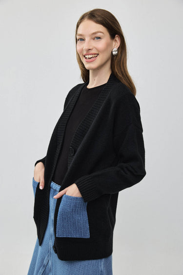 הקרדיגן האולטימטיבי למעבר בין עונות. עשוי מבד רך ונעים במיוחד, בגזרה משוחררת ואוברסייז שתתאים לכולן. כיסי הג'ינס הממוקמים בחזית, מוסיפים טוויסט ייחודי ושיקי לפריט. שלבי אותו מעל שמלה או טישרט, והתכונני למחמאות.