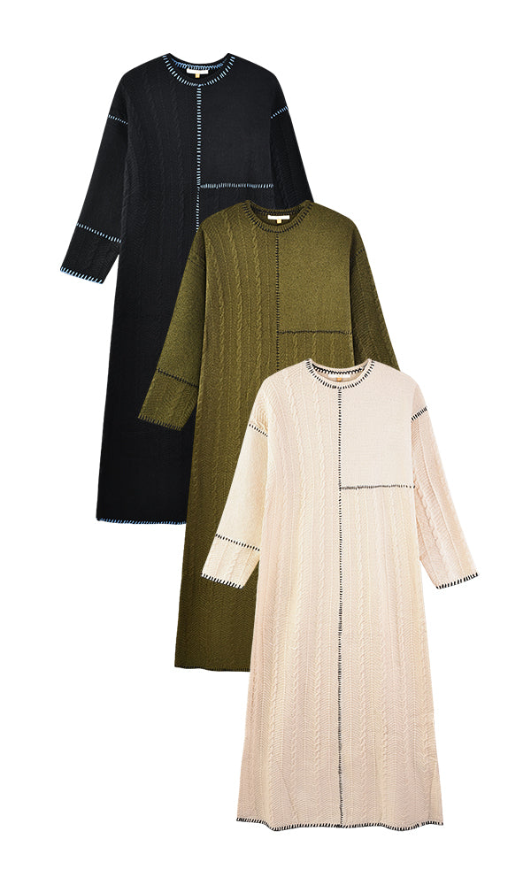 שמלת סריג טלאים רכה ומפנקת שתלווה אותך בסטייל בכל יום. השילוב הייחודי של טקסטורות וצבעים יוצר מראה עדכני ושיקי, והגזרה המשוחררת מבטיחה מקסימום נוחות. התכונני לקבל המון מחמאות!