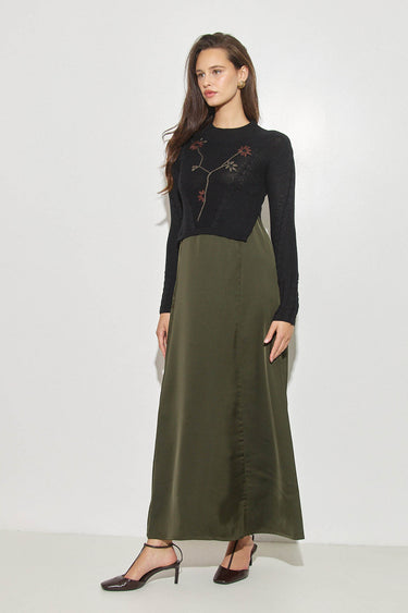 שמלת סאטן עם סריג ורקמה OLIVE