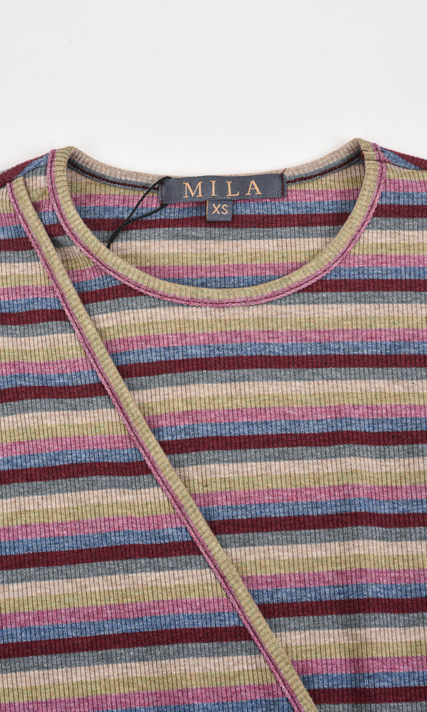 חולצת בייסיק דמוי מעטפת BURGUNDY
