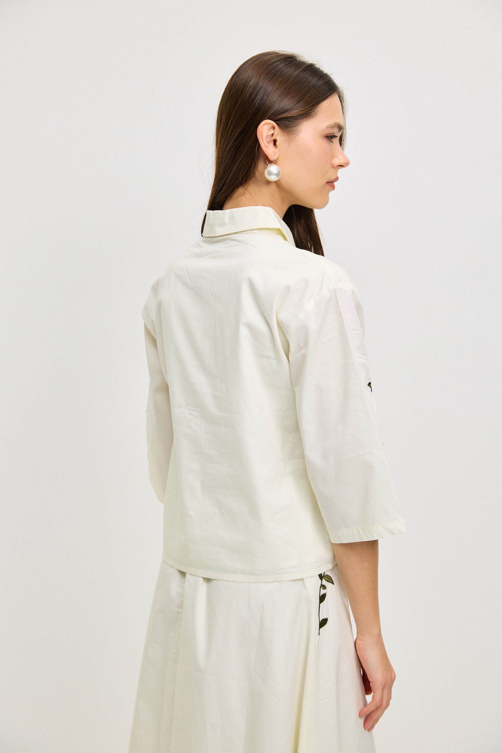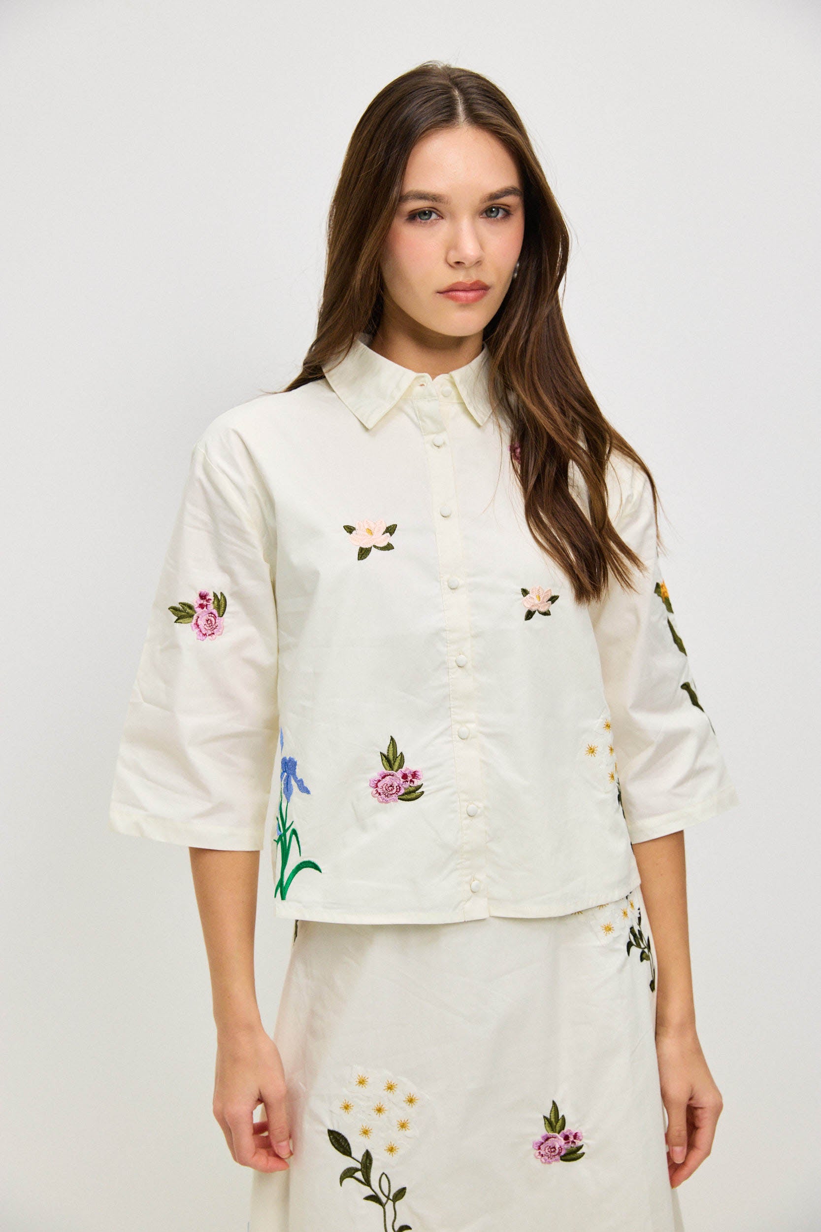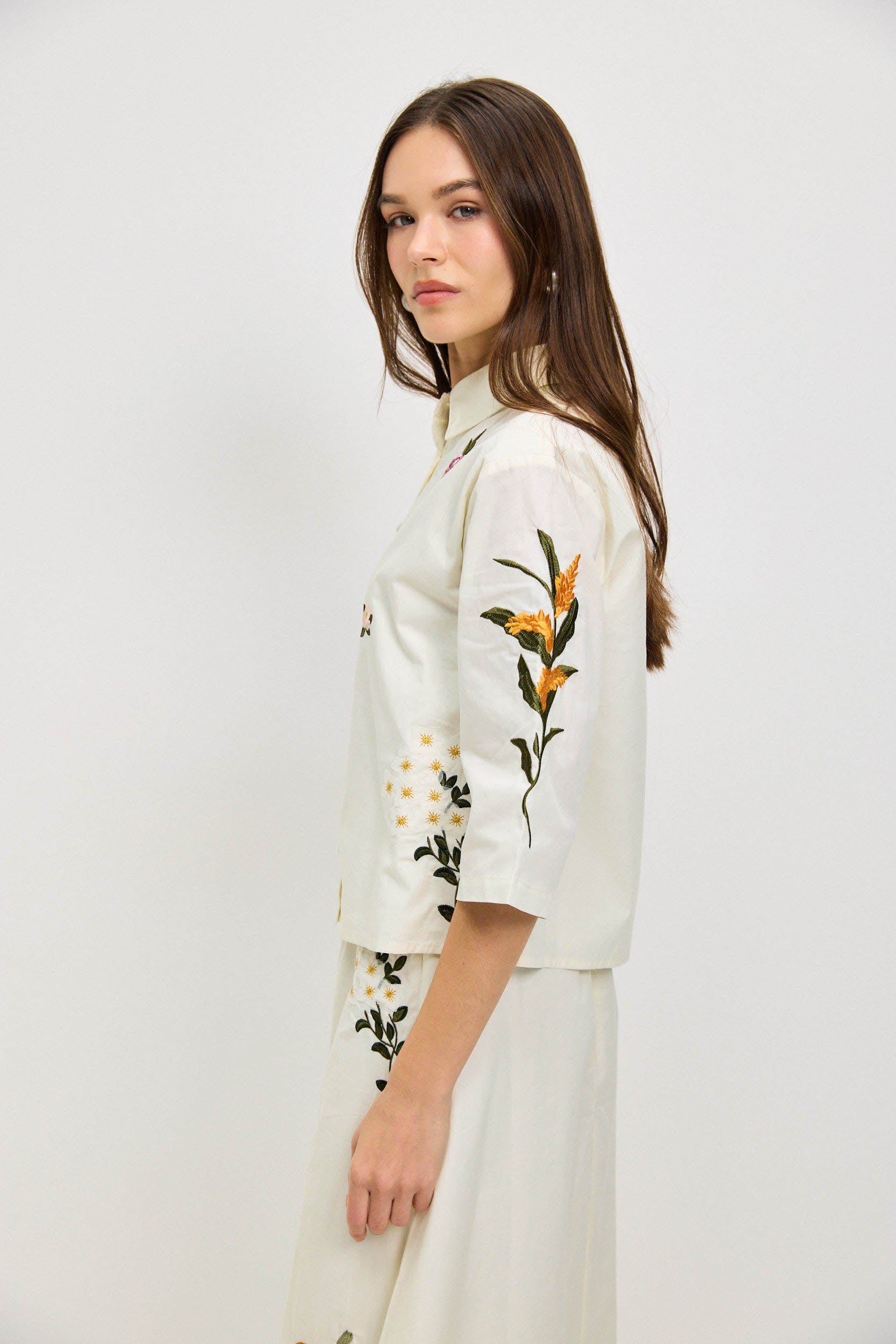 חולצה מכופתרת רקמה פרחוני